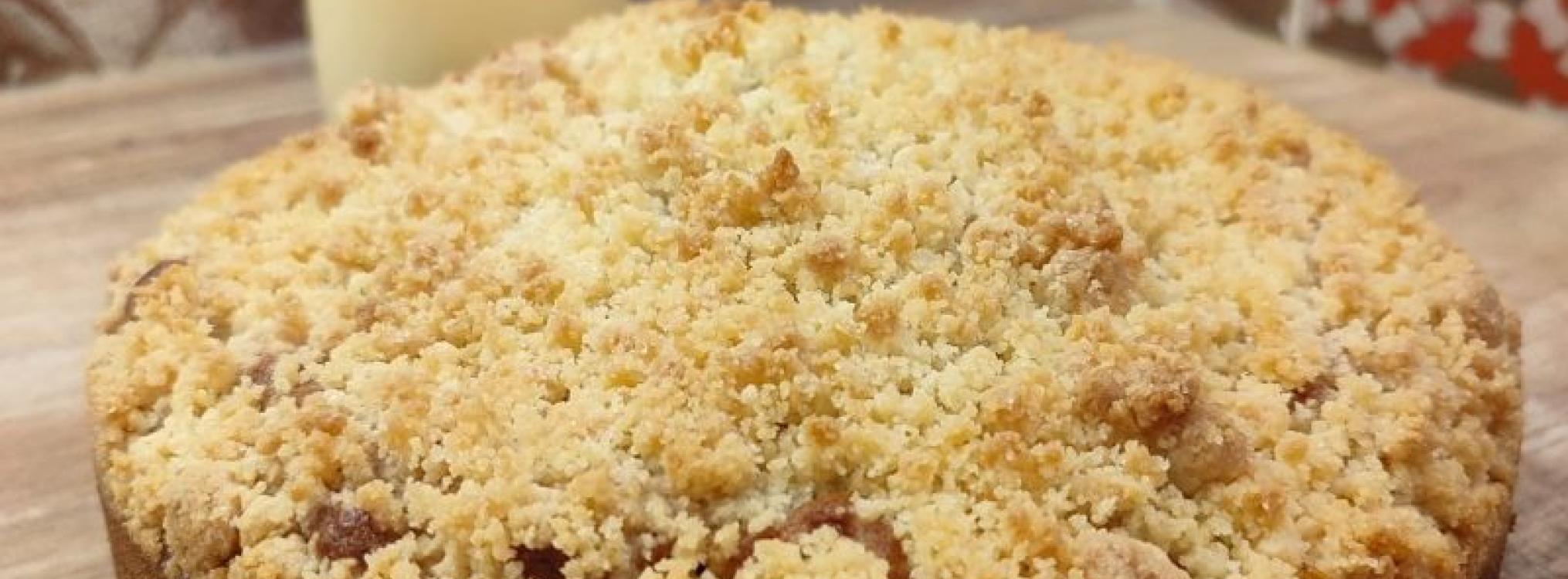 Ce gâteau moelleux et doux avec un délicieux crumble sur le dessus est traditionnellement servi avec de la crème anglaise.