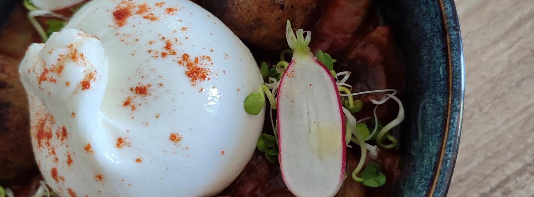 Comme son nom l'indique, le plat est composé de ratatouille froide, de falafels chauds, d’une burratina crémeuse (petite burrata).