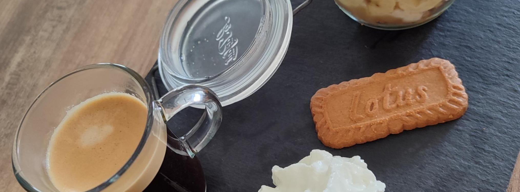 Munissez-vous de vos verrines avec le fond spéculoos, déposez 2 cuil à café de confiture de lait dans chacune.