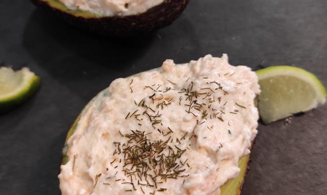 Avocat aux rillettes de saumon