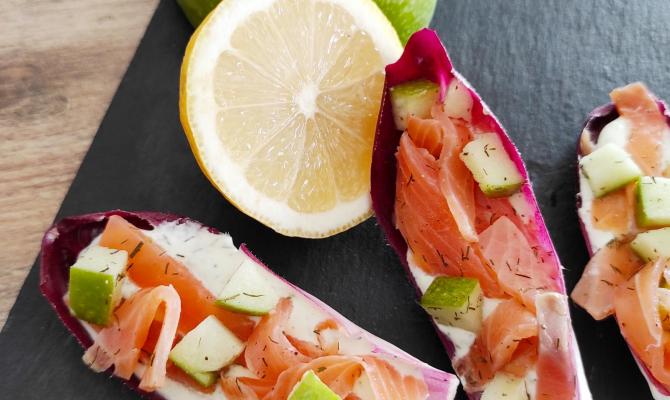 Barquettes d’endives au saumon, Granny smith et Aneth