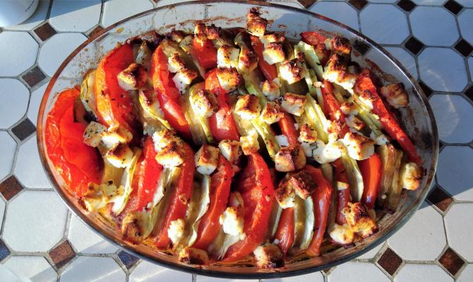 Fleischschnacka à la ratatouille, sauce au chèvre