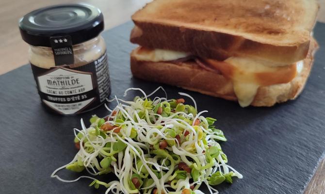 Sandwich scarmoza, coppa et truffe d'été